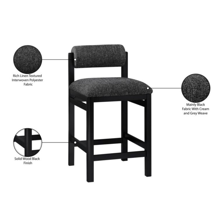 Soft textures and timeless design meet in the Roundhill counter stool, upholstered in a rich linen-textured black fabric. A black wood frame enhances its art deco silhouette, bringing warmth and sophistication to your dining space. Whether styled solo or paired with a set, this chair elevates the ambiance with understated elegance.