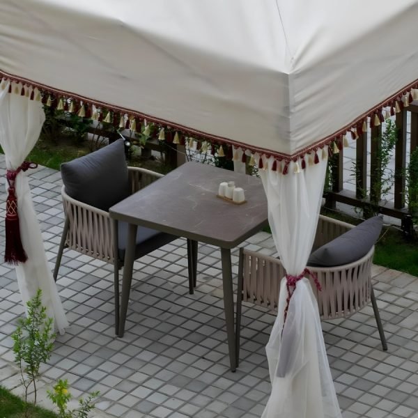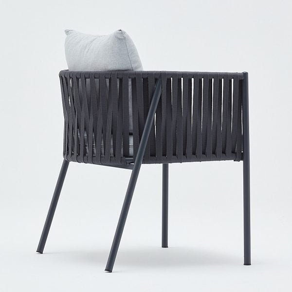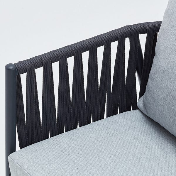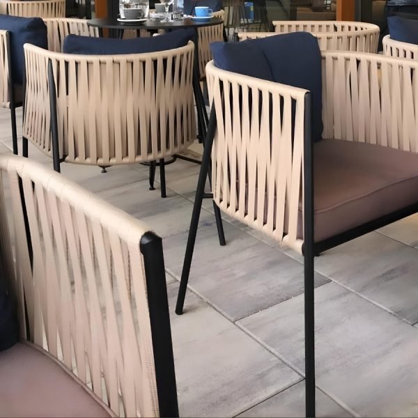 Having an aluminum body, the Woven Rope Armchair For Outdoor is both durable and light. It is easily portable. The fabric used in the production of the seat and back cushions; is resistant to weather conditions. Color selection can be made for the body, cushions and the woven rope. Logo can be applied on the upholstery for corporate companies and chain stores in the food and beverage sector.