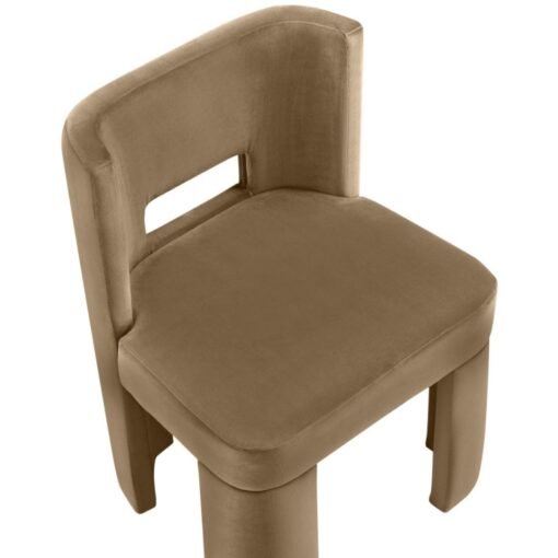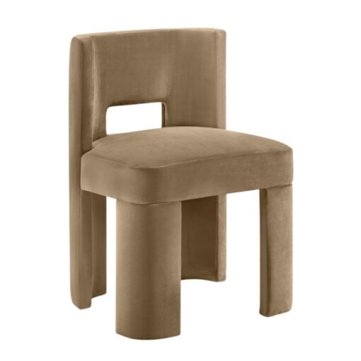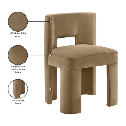 Sculptural and modern, the Zuno beige velvet upholstered dining chair makes a bold design statement. Its ultra-luxe velvet pairs with a solid wood frame for durability and comfort. With clean lines and a contemporary silhouette, it brings artful elegance to any dining space.