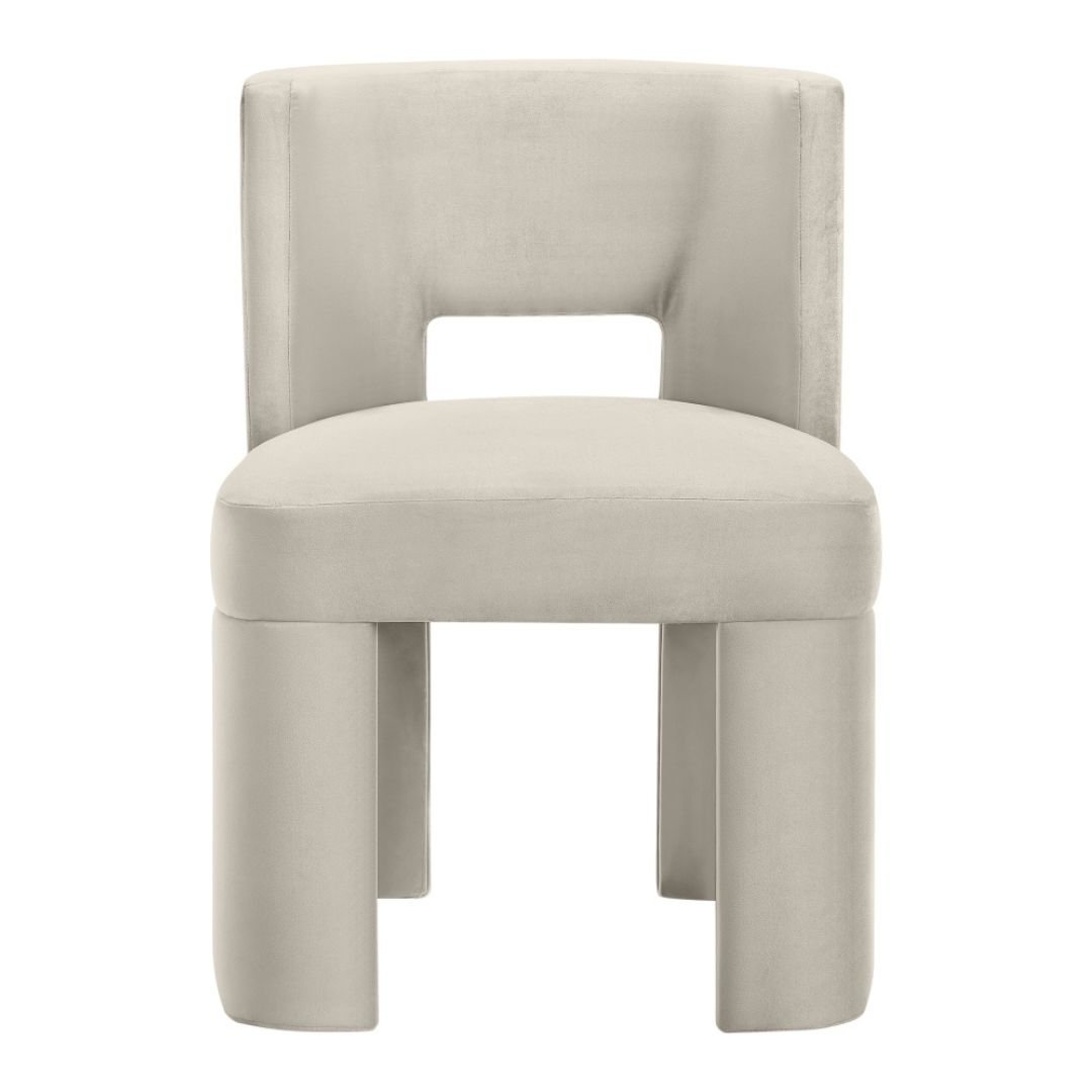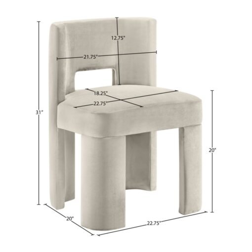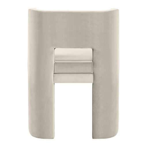 Sculptural and modern, the Zuno cream velvet upholstered dining chair makes a bold design statement. Its ultra-luxe velvet pairs with a solid wood frame for durability and comfort. With clean lines and a contemporary silhouette, it brings artful elegance to any dining space.